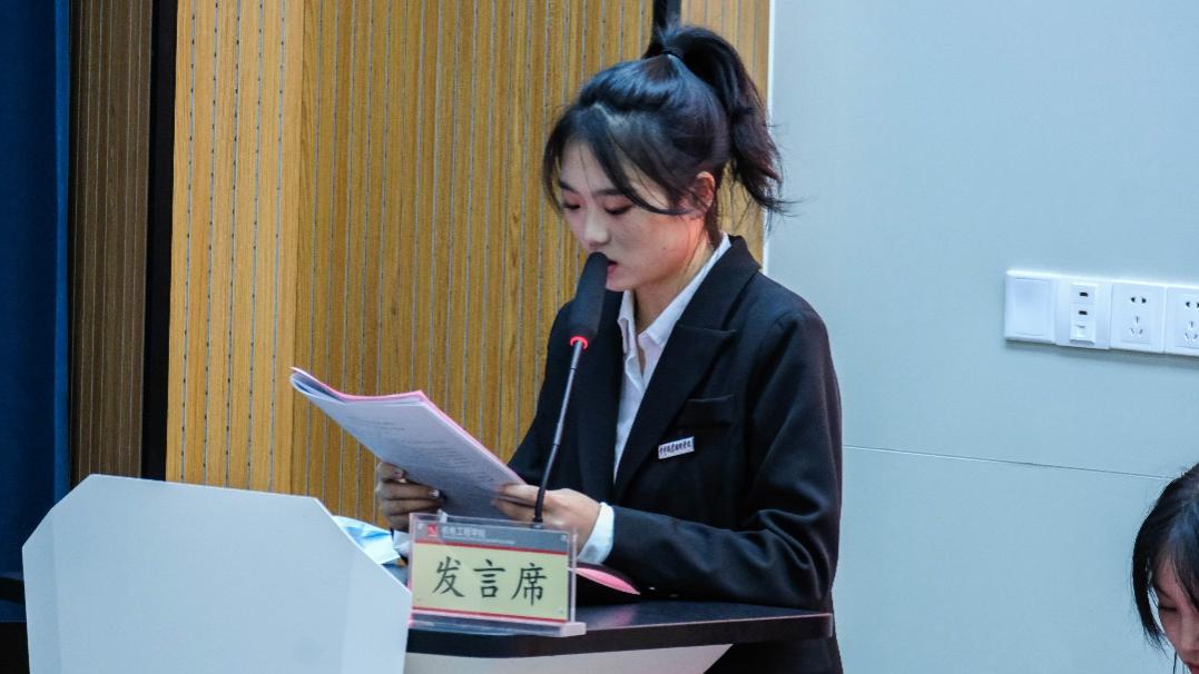 嘉宾致辞结束后,王子琦同学代表第十八届学生会向大会做了题为《依托高水平专业群优势,铸就机电精益匠心品牌,为我校建设中国特色高水平高职学校贡献青春力量》的工作报告。报告围绕学生会在思想引领、活动载体、学生权益、校园文化等方面,对过去一年的学生会工作进行回顾和总结。同时从院学生会的职能出发,对院学生会此后的工作作出规划,向即将上任的新一届的主席团提出期盼。