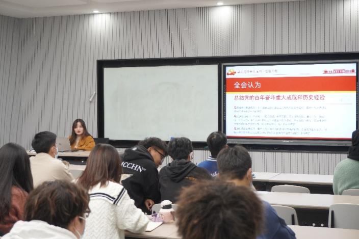 金帅楠老师对十九届六中全会精神的重点内容深入剖析,高度概括党百年奋斗的重大历史意义:一是从根本上改变了中国人民的前途命运;二是开辟了实现中华民族伟大复兴的正确道路;三是展示了马克思主义的强大生命力;四是深刻影响了世界历史进程;五是锻造了走在时代前列的中国共产党。金帅楠老师用深入浅出的语言引导在座学生骨干加深了对国情的认识,增强了对革命传统精神的理解,坚定了跟党走中国特色社会主义道路的理想信念。课程内容切实提高了学生骨干的思想政治素质。