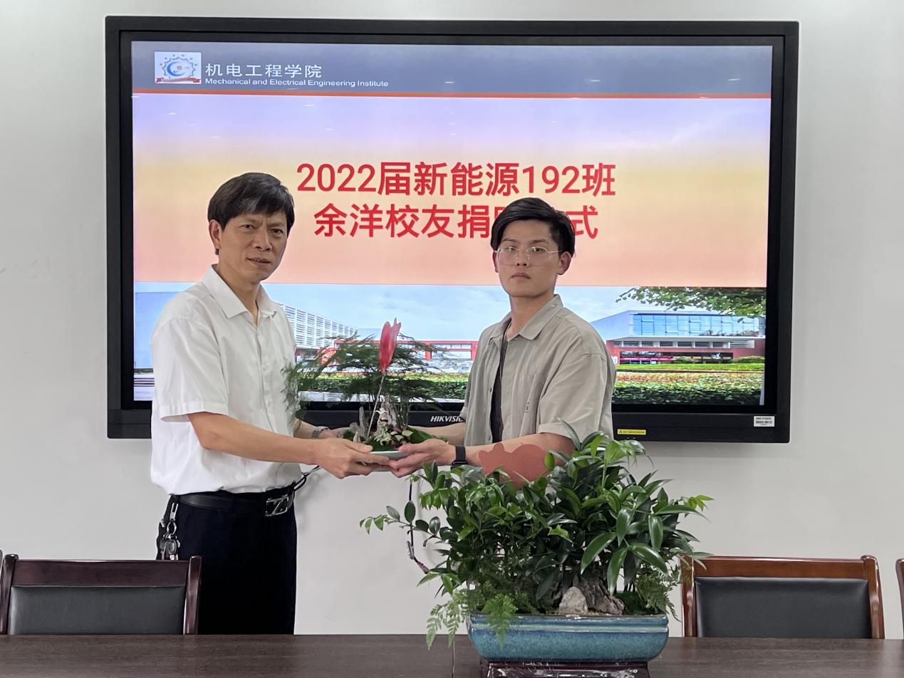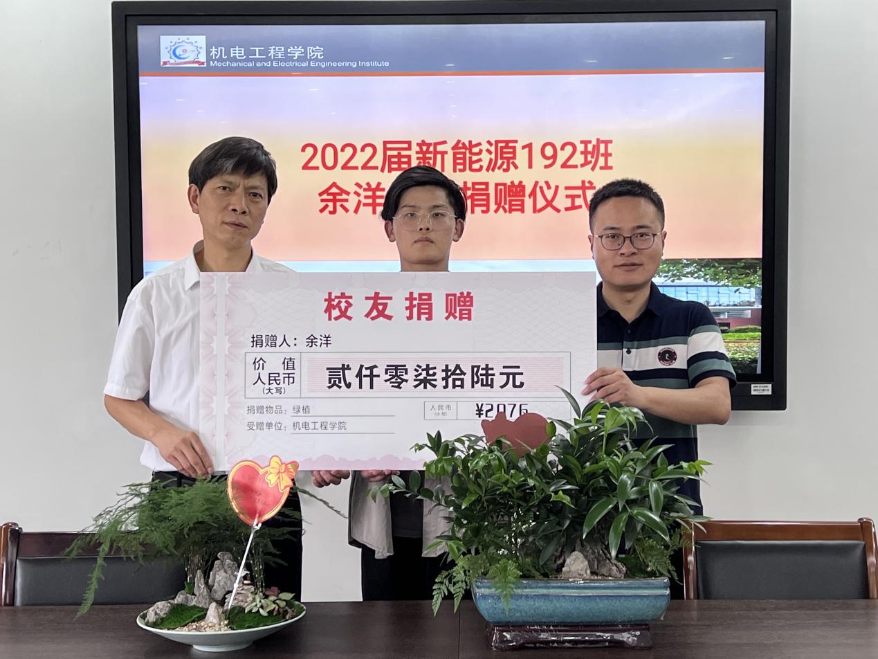 6月16日下午,机电学院优秀毕业生余洋向学院捐赠价值2076元绿植,用于办公室的装扮,捐赠仪式在科实北1608会议室举行。