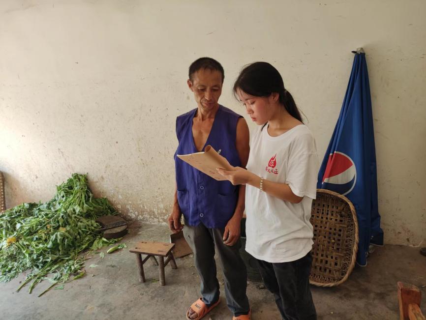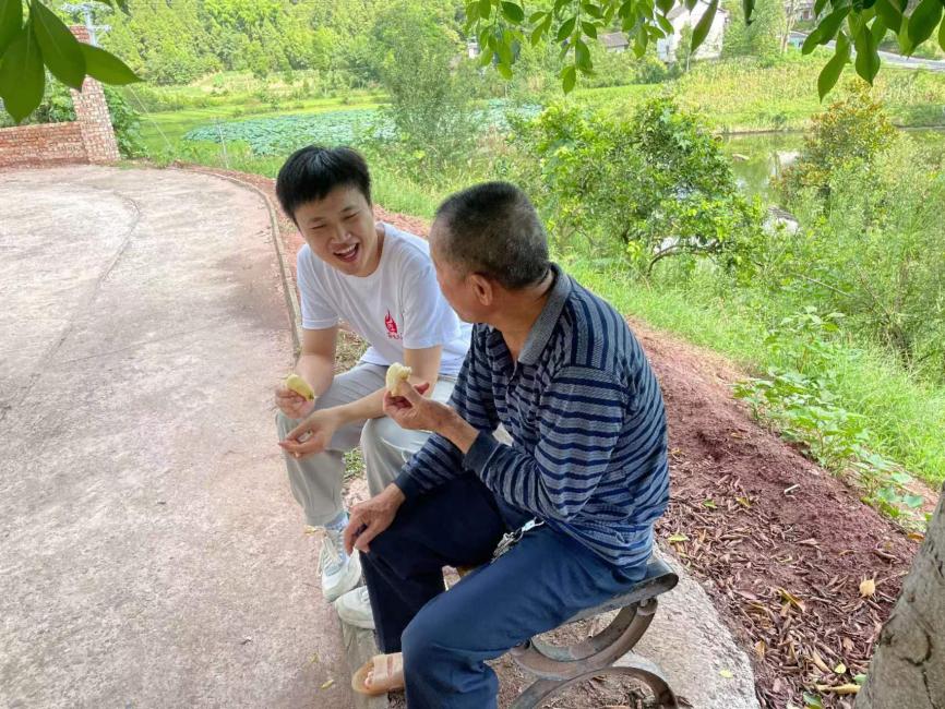 实践队员辗转家乡的多个村落,他们深入田间帮助村民干农活,挨家挨户进行农机设备问卷调查。炎热的天气无法阻止队员们前进的步伐,下地助农和实地调研帮助他们走出课堂、投身社会,提高理论联系实际、知识转化实践的能力。实践队员蒋中华表示:“在学校看到学长学姐所设计的便携式水果采摘器、茶叶梗叶分离机和自走式水田除草机等产品备受鼓舞,希望通过这次实践能够激发灵感、启迪匠心,设计出农机设备助力家乡振兴、村民共富!”