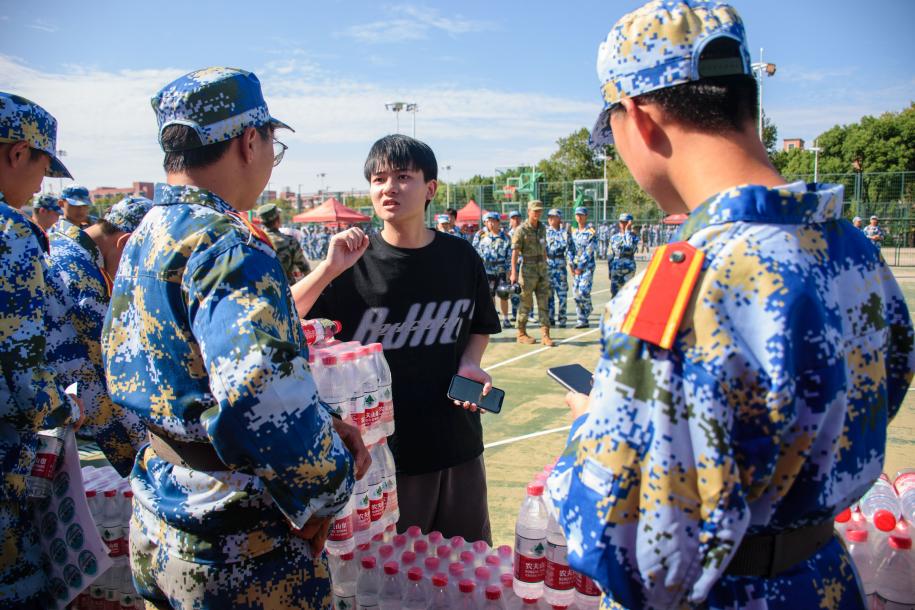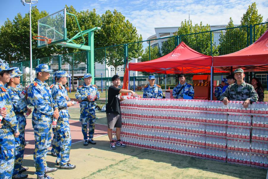 “我大一时就有了创业的想法,学校和学院都给予了很大的支持和帮助。今天来给学弟学妹们送水,希望他们能从中感受到我们学院是个温暖的大家庭。同时,也希望能够借此鼓励他们刻苦训练,将军训时学到的吃苦耐劳、坚持不懈的精神融入到未来的学习生活中,不断拼搏,为学校‘双高’建设做出贡献”,储睿说到。