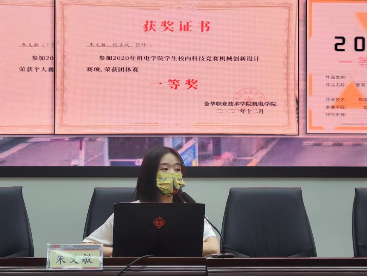 朱义敏重点向新生们介绍了专业学科竞赛经历和自己的瑜伽爱好,在金职的3年里,她参加多次设计比赛,获得过中国经典设计奖、省工业设计一等奖等奖项,申请国家级专利9项,已授权4项。闲暇之余,朱义敏喜欢上了瑜伽这种健身运动,并争取到机会进入了校队,后参加2021年全国健身瑜伽公开赛,这是全国瑜伽最高赛事,她凭借扎实的技能获女单第八名的好成绩。接下去的讲述中,朱义敏的瑜伽爱好并不单单只是瑜伽国赛获奖这么简单,作为机电工程学院的学生,她将兴趣和专业的结合,从一名瑜伽爱好者到专业的瑜伽训练师,再到设计瑜伽训练辅助装备并成功申请专利,她的事迹受到人民日报、钱江晚报等主流媒体报道,新生们无不表现出对学姐的敬佩,也下定决心以学姐为榜样,努力拼搏让大学青春无悔。