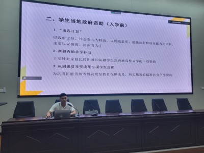 资助政策宣讲会上,辅导员老师从学生入学前、入学时、入学后、毕业后四个阶段解读政府和学校的资助政策,详细介绍了学校的“奖、勤、助、贷、补”多元化资助体系,并将申请的条件与同学们作了相关分享。为帮助资助对象学生在校期间全面提升自我,老师又给大家介绍了“仰望星空”素质课堂、““一带一路””阿郎行乡村振兴专项行动等发展性资助项目,鼓励同学们今后能够积极参与,在发展中、在奉献中丰富学习阅历、开托个人视野、提升综合素质。