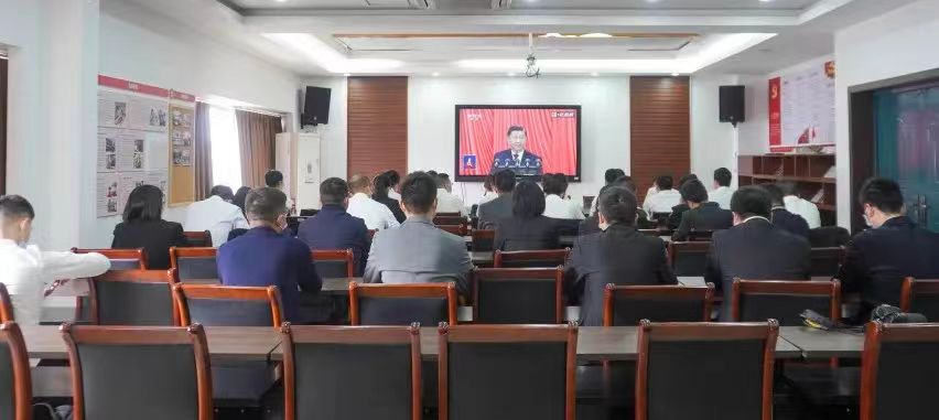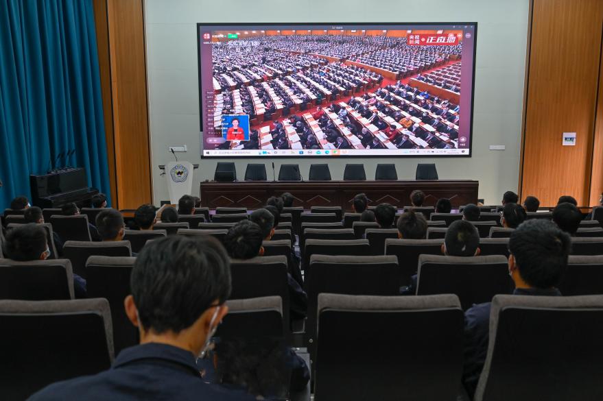 全体起立奏唱国歌后,在场师生向革命先辈默哀,随后,大家集体收看大会。本次大会的主题是:高举中国特色社会主义伟大旗帜,全面贯彻新时代中国特色社会主义思想,弘扬伟大建党精神,自信自强、守正创新,踔厉奋发、勇毅前行,为全面建设社会主义现代化国家、全面推进中华民族伟大复兴而团结奋斗。在场师生认真聆听了习近平总书记代表十九届中央委员会向大会做的报告,第一时间学习、热议中国共产党第二十次全国代表大会内容。