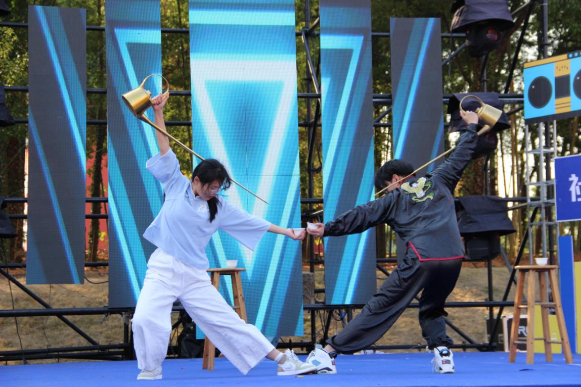 鼓声响起,伴随着热烈的欢呼与呐喊声,《南狮》拉开了舞台表演的序幕。UDG街舞社带来了《SNEAKERS》,整齐和谐的节律,协调一致的舞步,舒展灵活的动作,舞出了青春的活力和时代的风采。茶艺表演协会带来的《风云》营造了茶艺的文化氛围,带来了民俗气息,长嘴壶独特的外形,不仅具有实用性还具有很强的观赏性。一场场精彩绝伦的舞台表演在同学们热烈的鼓掌声中落下帷幕。