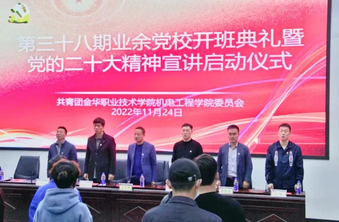 典礼在庄严的国歌声中拉开序幕!机电工程学院党委负责人在开班典礼上发表讲话,他首先向全体学员表示热烈的欢迎和衷心的祝愿。他讲到,业余党校是先进青年学习党的基本知识、接受共产主义教育、提高自身思想政治素质的重要阵地,是为党的事业培养合格接班人的摇篮,能在党的二十大会议胜利召开的背景下参加业余党校的学习是非常幸运的,希望各位同学能学有所思,学有所悟,学有所获。