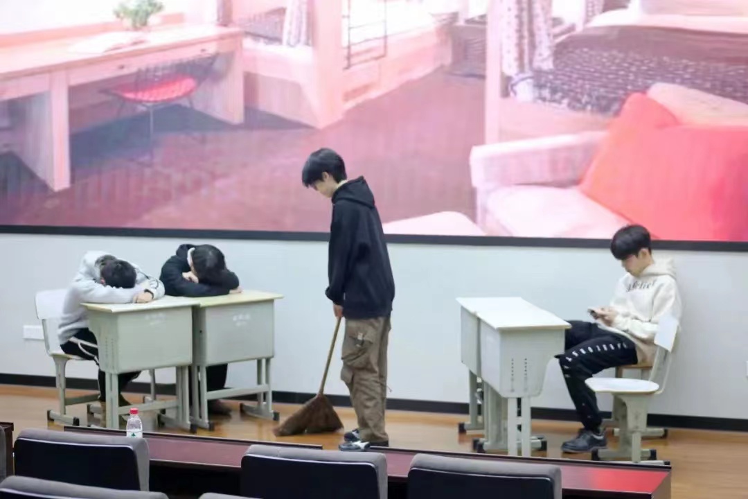 心理辅导员童丽颖老师对此次心理情景剧是这样理解的:“此次活动不是单纯的背台词,而是一个变化的过程,是一个分享的过程,更是当事人和观众共同成长的过程。希望可以通过此次活动,用演绎校园生活中发生的故事来纾解学生心理压力,从而达到正确认识压力、认识自我、悦纳自我的目的。”