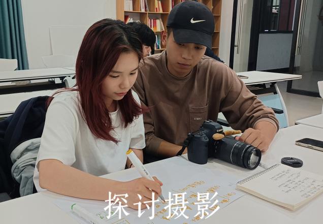 在“一站式”学生社区中,学习摄影的两位同学正在热火朝天的讨论,“学习帮帮帮”活动不仅可以让学生实操学习器材,指导者更能将自己积累的一些经验、心得面对面传授给对方。在摄影技能中,曝光三要素、构图方法成为大家最常讨论的话题。