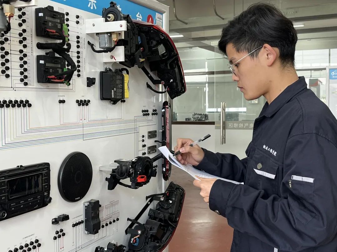 “路漫漫,不忘初心”是他的学习态度。大一,他通过面试、技能测试,以综合第一的成绩入选新能源汽车技术专业赛教融合班。在那里他精练技能,从开始的拆装排故,到后来的诊断研发,他扎实了自己的专业基础。