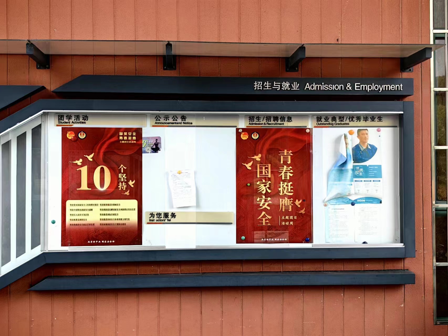 随后,机电学院学工办老师老师邀与会人员共同参观了国家安全主题海报展。这些海报以图文并茂的形式,展示了国家安全领域的各个方面,包括生态安全、粮食安全、网络安全、以及海外利益安全等多个国家安全方面,更加生动形象地展示出国家安全的多样性及地位。
