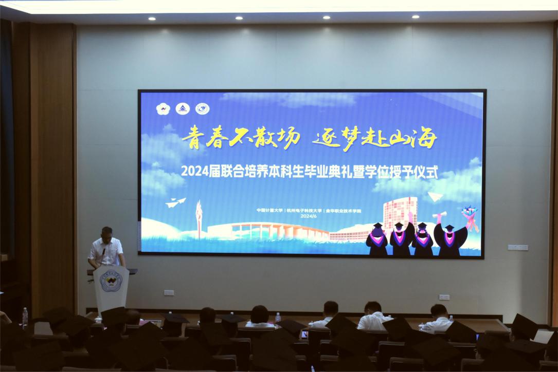 栀子花香,离别情浓,骊歌渐响,青春起航。近日,机电工程学院2024届联合培养本科生毕业典礼暨学位授予仪式顺利举行,中国计量大学机电工程学院副院长许素安,杭州电子科技大学机械工程学院实验中心主任,金职院副校长张雁平出席毕业典礼,机电学院相关负责人、教师代表及全体2024届本科毕业生参加典礼。
