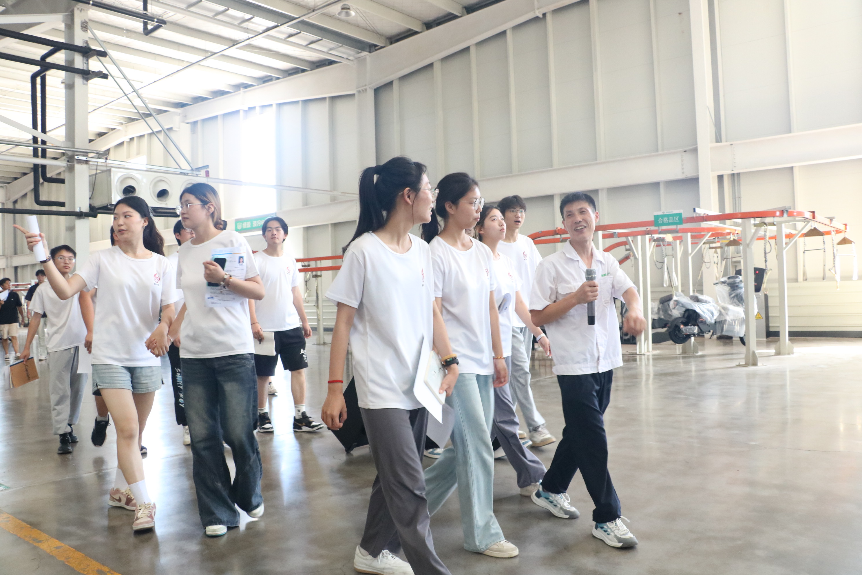 “一辆电动车从分散的零部件到完成整车安装,整个过程只有短短一分钟”生产部经理王老师说道。自动化产线上惊人的效率让同学们感到震撼,“我的专业就是学自动化的,以后我也可以像他们一样在生产线上做一名工程师吗?”自动化专业大一新生潘俊期待地问道。王老师肯定地回答:“当然可以,你们在学校期间要动手,多实践,理论与实践相结合,才能成为一名卓越的自动化工程师”。