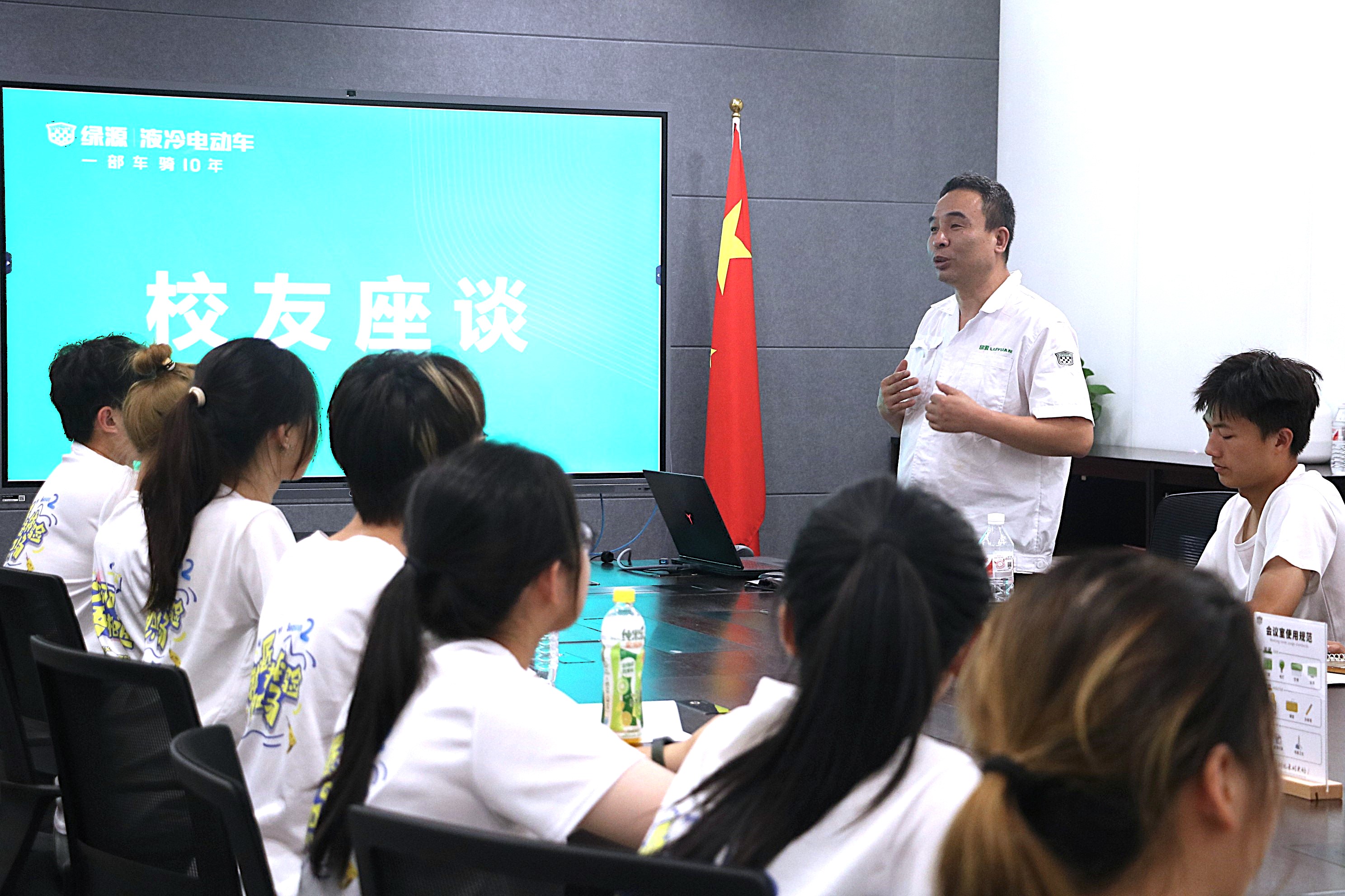 “我也是一名金职人,入职以来,从一名操作工干起,不怕苦、不怕累,潜心钻研数控精密加工技术...”绿源华东生产部部长夏老师作为优秀校友,和同学们讲述他从“平凡到卓越”的职业故事。“各位同学们,你们需要有一颗不畏艰辛、不惧劳碌的坚韧之心,敢于扎根生产一线,只有足够了解公司的产品,才能成为一名卓越的工程师。”夏老师告诫同学们。