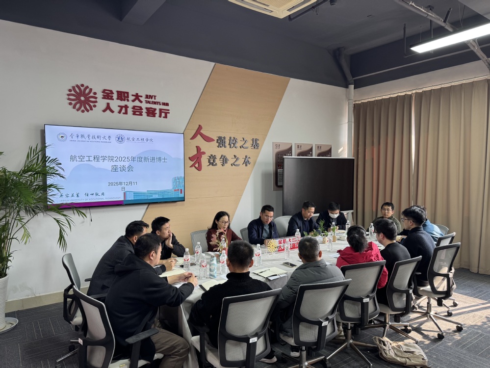 为深入实施“人才强院”战略,切实了解新进博士教师的发展需求,营造“尊才、育才、用才”的良好生态,12月11日,航空工程学院在教师发展中心四楼人才会客厅召开2025年度新进博士座谈会。航空工程学院院领导、三办一部负责人、教学督导及全体新进博士教师齐聚一堂,围绕成长诉求、职业规划与学院建设展开深入交流。