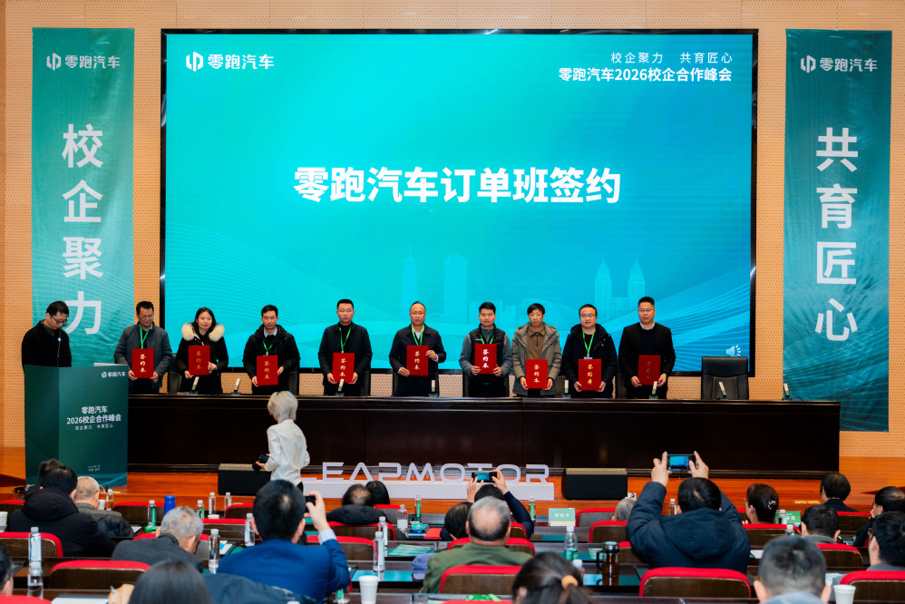 1月7日,以“校企聚力,共育匠心”为主题的零跑汽车2026校企合作峰会暨新能源及智能网联汽车产教融合共同体成立大会在金华职业技术大学举行。