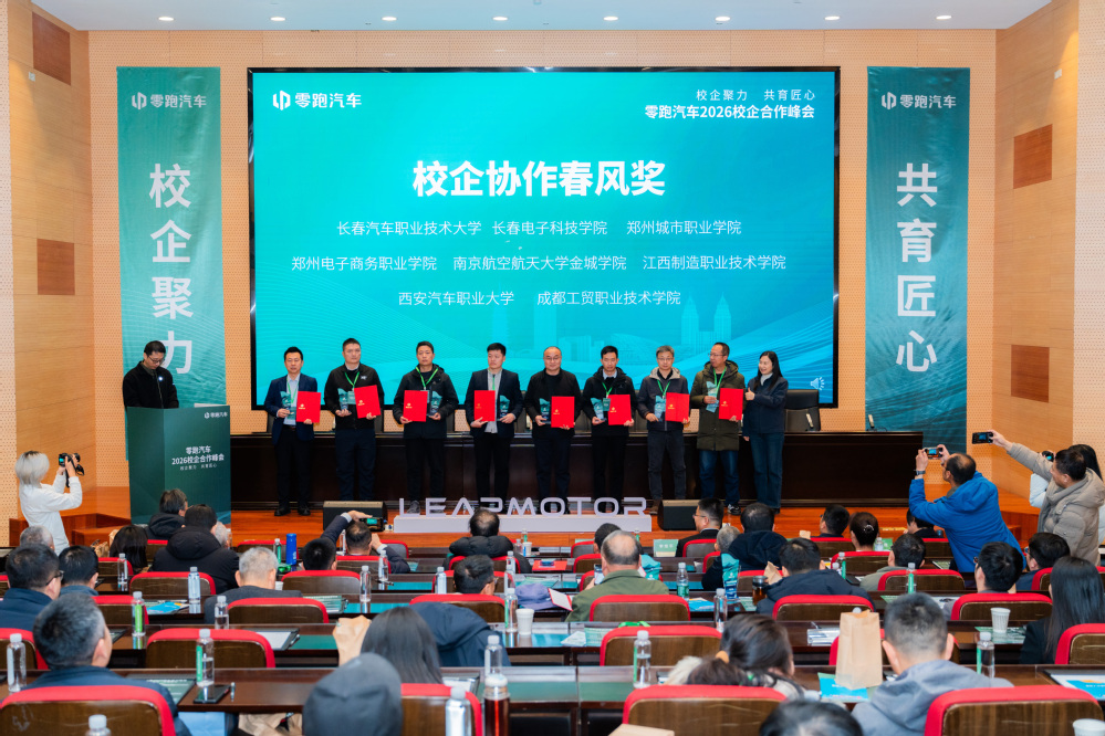 会上,还表彰了年度“青苗计划”优秀合作院校。凭借在校企合作领域的扎实积淀与卓越表现,金华职业技术大学荣获零跑汽车“校企合作深耕奖”。与学校一同获得该项殊荣的还有浙江交通职业技术学院等6所兄弟院校。此外,长春汽车职业技术大学等8所院校荣获零跑汽车“校企协作春风奖”。