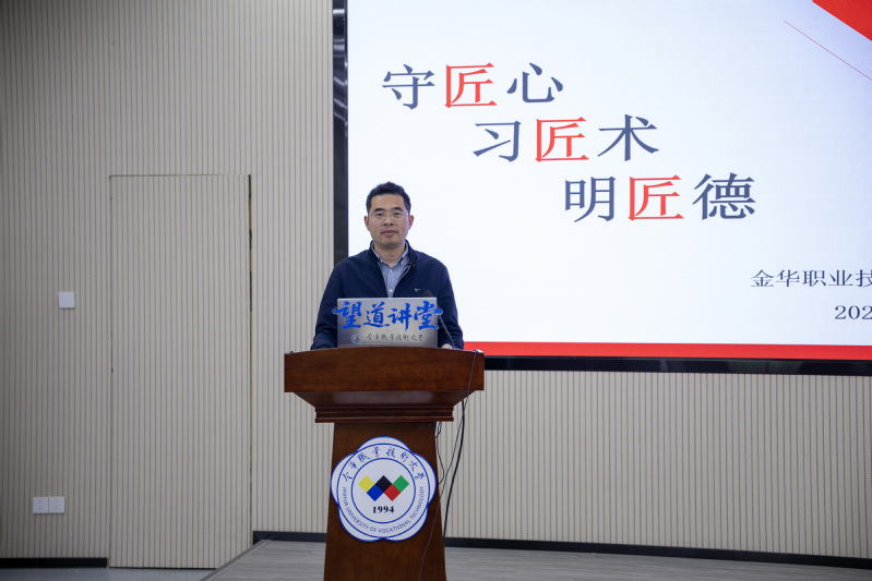 党课上,章跃洪围绕“何为工匠精神”“在热爱中践行工匠精神”“在细节中浸润工匠精神”展开讲述。他指出,工匠精神是爱岗敬业、精益求精的职业精神,也是党员担当奉献的精神底色。他结合自身从学徒工成长为全国技术能手的奋斗历程,阐释了从“一个人战斗”到“一群人奉献”的匠心传承。他以“1丝=0.01毫米”为例,强调“99分在企业里是一个不合格品”的极致追求,勉励党员把工匠精神融入学习工作细节。整场党课内容充实、感染力强。章跃洪以“左手教室、右手车间”的坚守,诠释了党员教师的责任担当。他建议大家要打造好“自己”个人品牌、不怕吃亏甘于奉献,以热爱涵养初心、以专注锤炼本领、以奉献实现价值。他用习近平总书记提出的“守匠心、习匠术、明匠德”寄语青年学子,勉励大家牢记“择一事,终一生,不为繁华易匠心”,在技能报国中彰显青春担当。本次党课将党性教育与工匠精神培育深度融合,为青年学子上了一堂生动的信仰课、奋斗课和成长课。